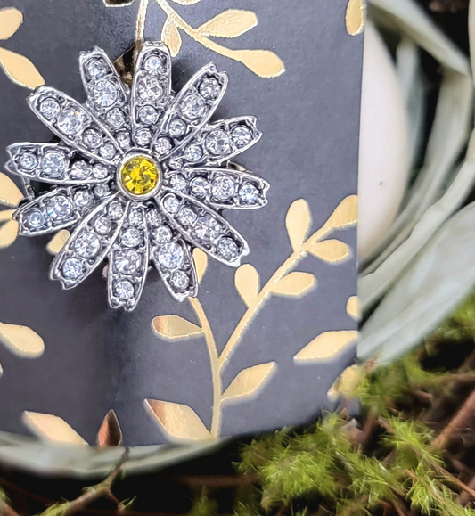 Jeweled White Daisy Brooch