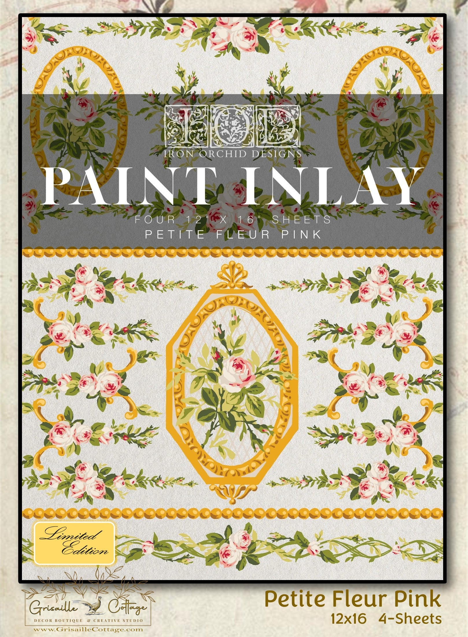 Petite Fleur Pink - 4 Sheets, 12x16 Pad IOD Paint Inlay™